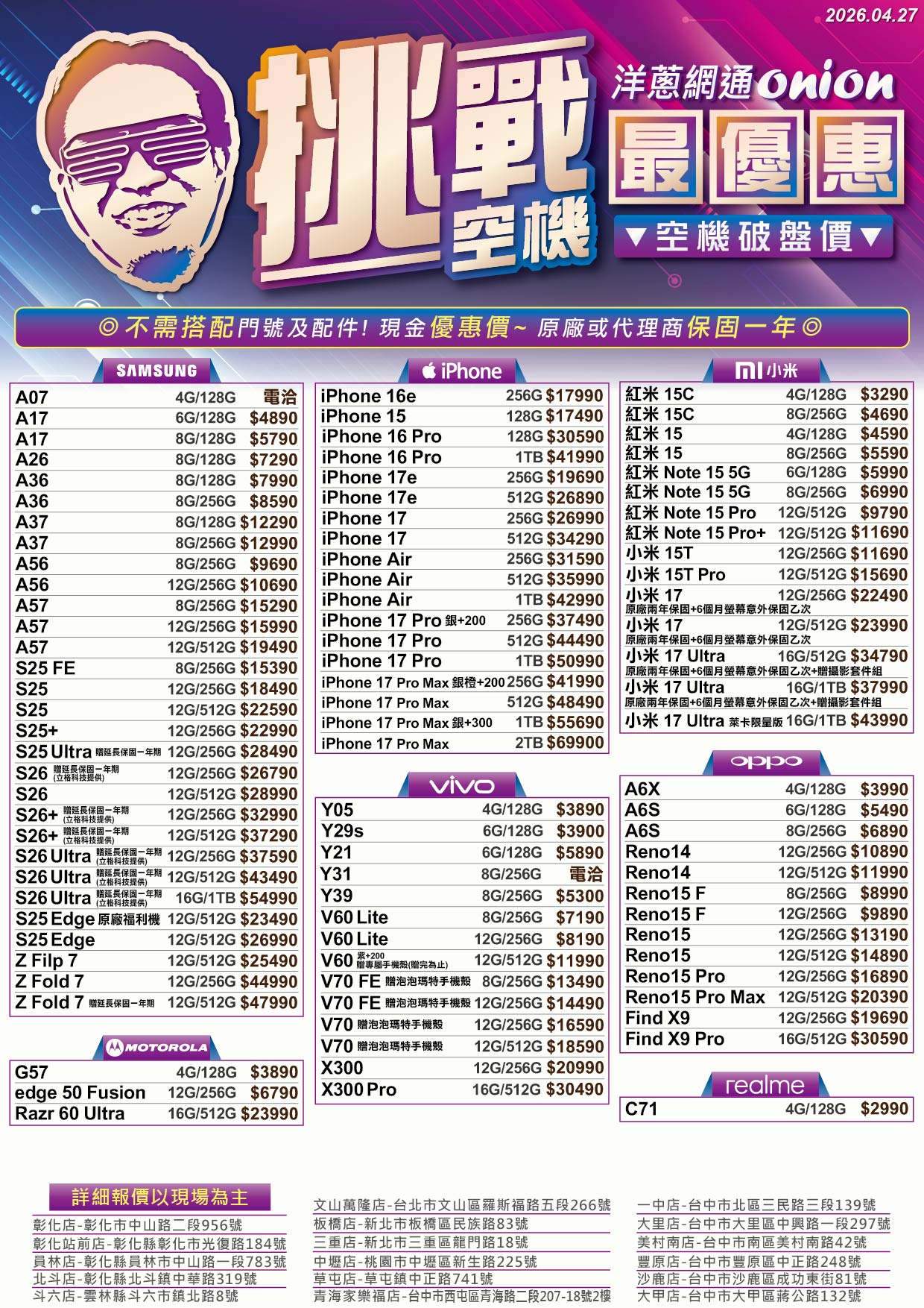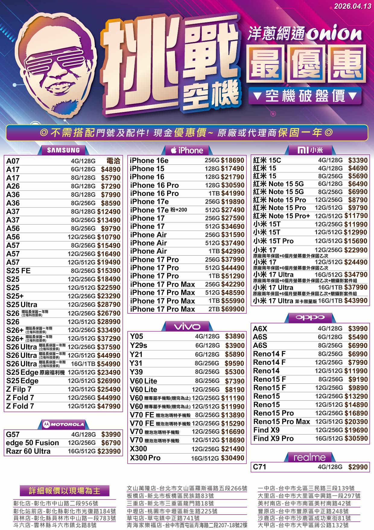 北/中部最佳連鎖通訊,手機價格與享有的門號折扣優惠和專業的電信諮詢服務,就是要給北/中部地區的民眾一個最便利與最優惠的購機新選擇,都能讓每一個客戶感受體會開心到落淚的感動~