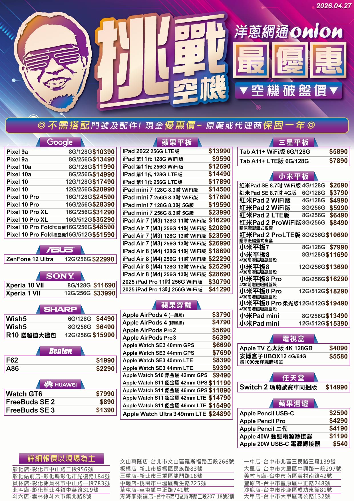 Apple iPhone 17 Pro Max 256G(銀/橙色價格+$200...