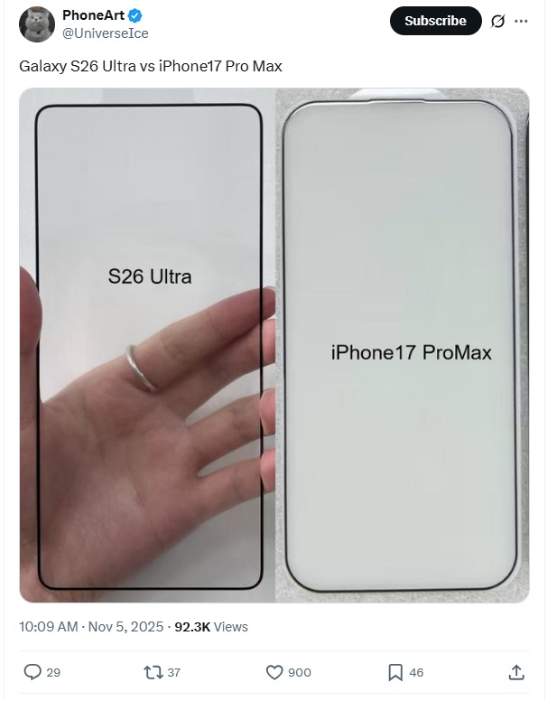這種反向調整主要是因為新一代 Ultra 傳聞將採用更纖薄的機身設計。更細的側框、加大的邊角圓弧,以及稍微收斂的重量,使 Ultra 看起來更俐落,也更具旗艦感。