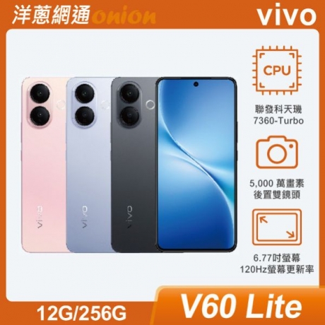 vivo V60 Lite 5G 運行 Android 15 作業系統、Funtouch OS 15 操作介面,搭載聯發科天璣 7360-Turbo 八核心處理器,提供 8GB RAM / 256GB ROM、12GB RAM / 256GB ROM 版本。機身採用 Nano-SIM 卡槽設計,支援 5G + 5G 雙卡雙待,擁有 Wi-Fi 6、藍牙 5.4、NFC、OTG 與門禁卡功能;續航配備 6,500mAh 電池,支援 90W 極速閃充、有線反向充電,旁路充電功能可直接供電,減輕電池負擔、發熱與延長電池壽命。
